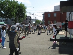 中央区役所の保健師による準備体操をして、出発!