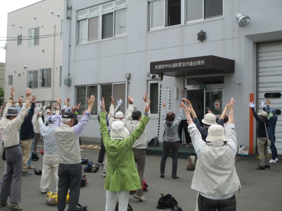 令和元年5月31日(金)、宮の森大倉山連合町内会主催の「春の健康づくりウォーキング会」が開催され62人の方が参加されました。まずは楽しく歩くためにみんなでラジオ体操を行いました。