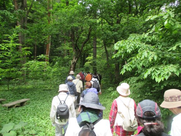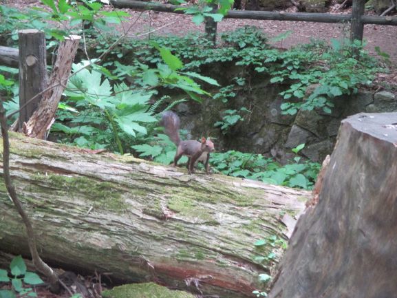 ここから坂下グラウンド方面に向かい、南1条通り沿いの木道をとおり円山動物園へ。途中、エゾリスの歓迎を受けながらの快適なウォーキングです。