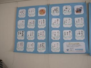 ◆展示されている色紙は、同会館で開かれている書峰社書道の教室に通う子どもたちが書いたものです。「彩の人生」、「いつも一緒に」などの書に、孫から祖父母への温かい感謝の気持ちが込められています。また、色紙には手書きのメッセージも添えられています。