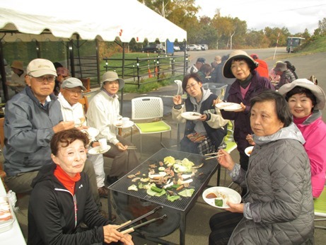 終了後は、バーベキュー。この頃には雨も上がり、おいしくいただきました。