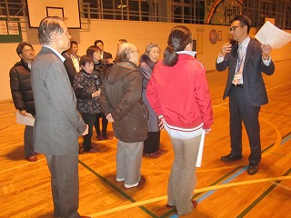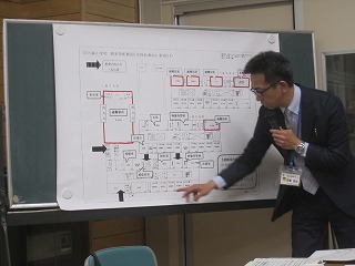 ◆続いて、森下課長が「あらかじめ避難所運営体制を作っておけば、いざというときに運営の負担を少なくすることができます」と運営体制づくりの趣旨を説明。