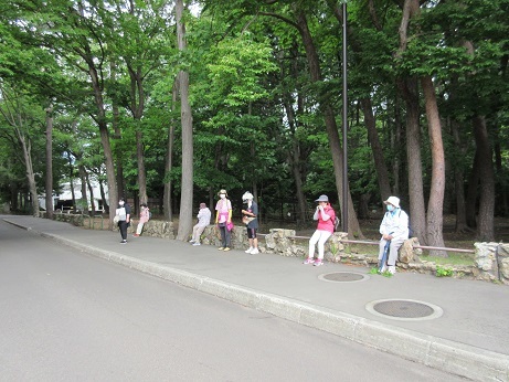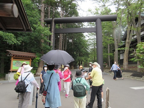 北海道神宮では新しくできた神宮茶屋で一休みし、その後、北海道神宮を参拝したり、周辺を散策するなど15分ほど自由時間を設け、六花亭前の鳥居に集合し、明和地区会館に戻りました。