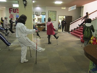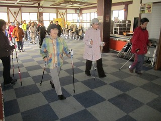 この日は、主としてハウスの中で、ノルディックウォーキングの講習会を開講。