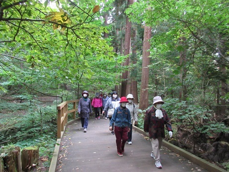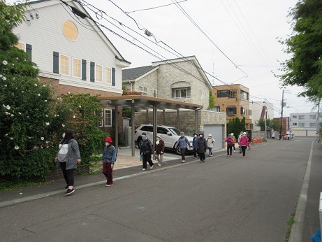 前回同様、検温、体調チェックを行った後、ソーシャルディスタンスの確保や大声を出さないなどのコロナ対策のほか、ウォーキングに関する注意事項について説明をした後、午前9時に会館を出発。気温15度、風もなく、ウォーキングには最適な日和の中、颯爽とスタートしました。