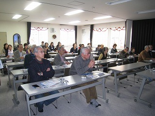 地域の方々の関心も高く、35人の方々が来場して講義を聞いていました。