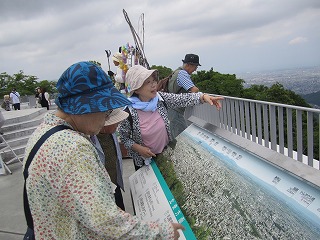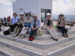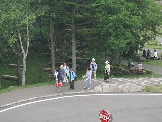 歩くグループは、ほそうされた道を15分から20分ほどかけ、思い思いにゆっくり上って山頂にたどり着きました。