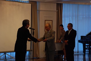 ◆この懇談会ののち、感謝状の贈呈式が行われました。今年5月の連町総会まで長きにわたり、連町の会長や顧問などの要職を務めていただいた、宮の森中央町内会の府録弘幸前会長、防犯防火部長や副会長などの要職を務めていただいた、宮の森北二町内会の東健治前会長、お二人には、札幌市上田文雄市長の感謝状が岸区長から、宮の森大倉山連合町内会の感謝状と記念品が宮の森大倉山連合町内会の吉田重弘会長から、それぞれ贈呈されました。お二人から一言ずつご挨拶があり、府録前会長は「過分なる表彰に恐縮しております。これまでの皆様方のご協力に感謝申し上げます」、東前会長は「これまでの皆様方のご協力に、ただ感謝、感謝、感謝」とそれぞれ述べられました。
