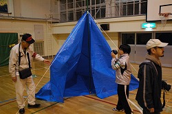 ■大規模地震や風水害などの災害時に避難所となる小学校の体育館での生活を実際に泊って体験する「避難所宿泊体験会」。第2回目となる今年は、三角山小学校を会場として、9月25日(土)26日(日)の2日間で実施しました。