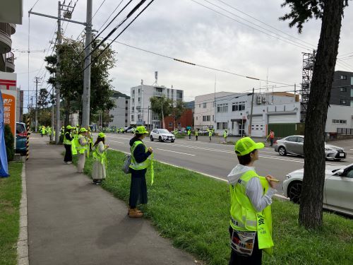 令和5年9月21日(木)、宮の森交番付近の北1条通沿道で、宮の森大倉山地区の交通安全街頭啓発を行いました。