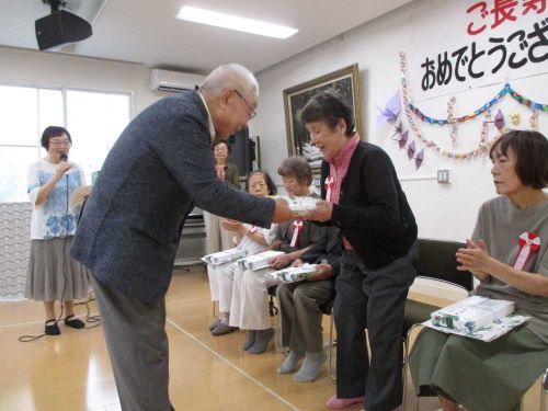 今回、お祝いされたのは、米寿を迎えた方3名、傘寿を迎えた方1名、喜寿を迎えた方2名の計6名。