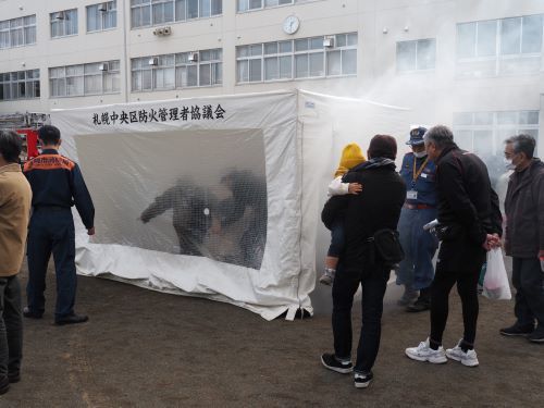 中央消防署宮の森出張所の協力により、応急手当訓練、煙道通過訓練、消火体験のほか、消防車両も展示。