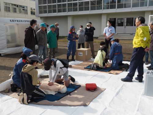 参加された皆さんは本番さながらの真剣な表情で応急手当訓練に取り組んでいました。