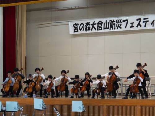 今年は宮の森小学校のスクールバンドのメンバーと、スズキ・メソードさんのバイオリンとチェロ教室の子どもたちが出演。