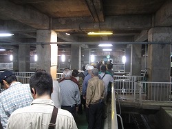 ■「中央監視室」「ポンプ室」「最初沈澱池」「最終沈澱池」など主要な施設を見学し、下水道水が段々ときれいな水に変わっていく様を目の当たりにしました。
