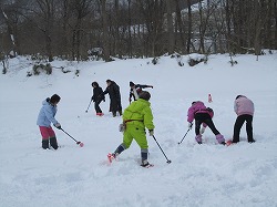■ちょうど良い深雪の上でのプレーとなり、ボールが思うように飛ばずに、皆さん悪戦苦闘。笑い声が絶えない体験会となりました。
