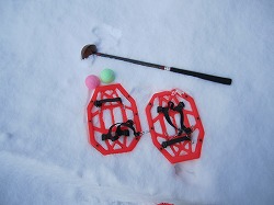 ■「ゴルポッカ」とは、北翔大学寒冷地スポーツ推進研究グループが開発した冬の新しいスポーツです。一言でいえば、雪上パークゴルフ。ルールはパークゴルフが基本です。でも、普通のパークゴルフとは幾つか異なり、「かんじき」を足にはきます。
