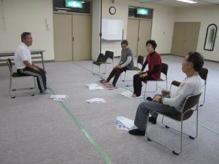 ◆後半は、椅子に座りながら、タオルを使って行う体操をしました。床に敷いたタオルを足で畳む体操では、参加者が「足がだるくなりますが、いい運動ですね」と話していました。