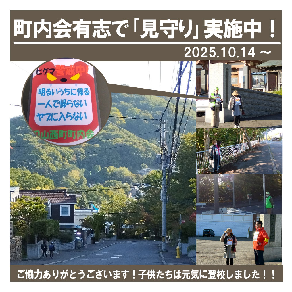 10月14日(火)から一週間を目途に円山西町町内会の役員有志で、通学時の「見守り」を行うことになりました。