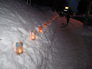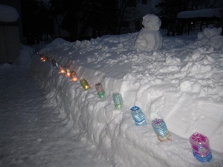 この児童会館の周辺でも、ペットボトルに入れたキャンドル、スノーキャンドルに明かりが灯されています。