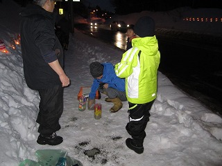 円山西町町内会の方々が、藻岩山麓通を挟んで向かい合わせに、ペットボトルに入れたキャンドルを、歩道沿いに並べて明かりを灯していました。