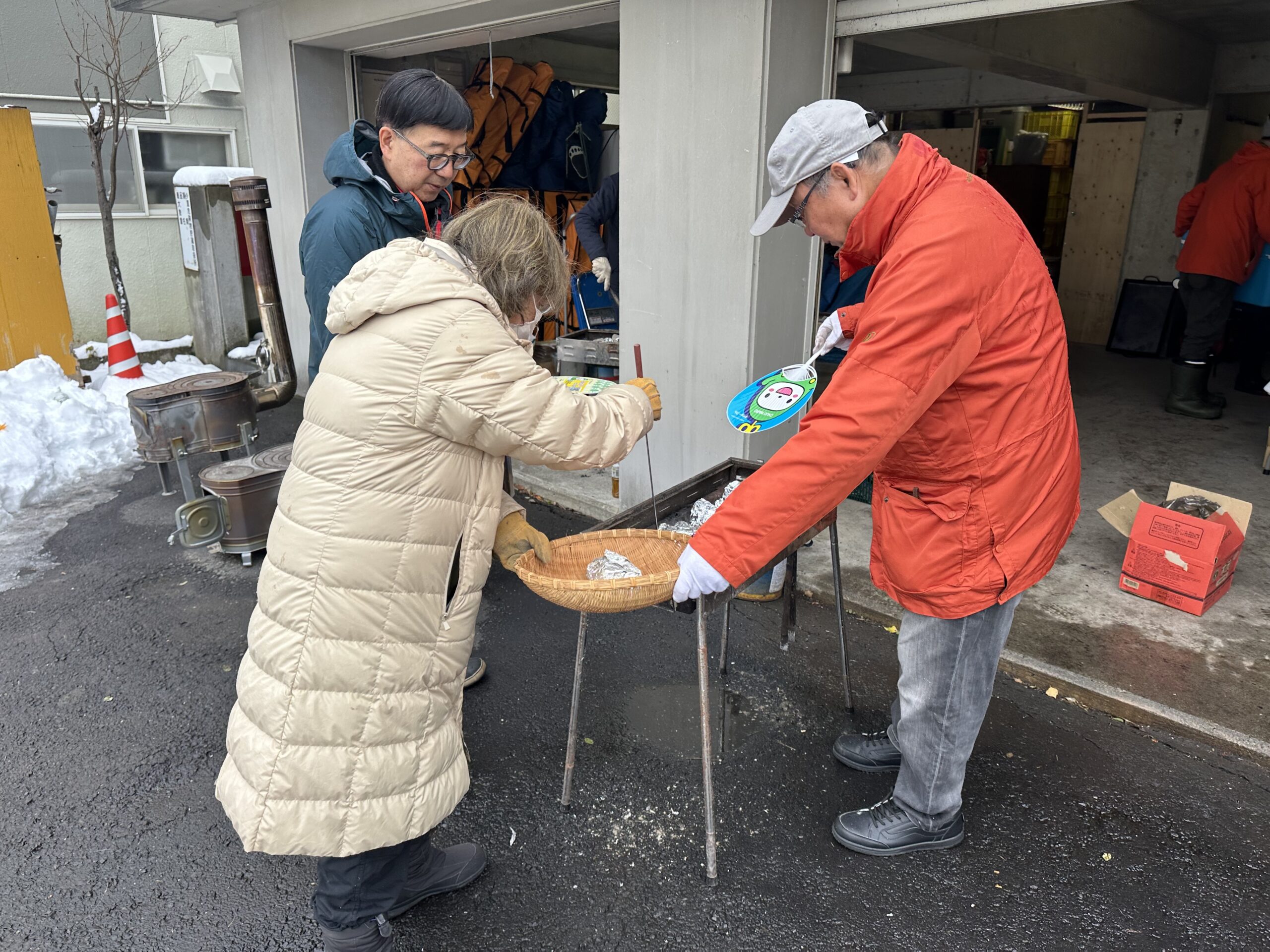 開催前日の札幌市内では20センチの降雪があり、当日の一斉清掃は短縮となりましたが、町内会役員の皆さまが早朝から準備に尽力くださったおかげで、地域の皆さまが楽しみにしていた焼き芋会は無事に開催されました。