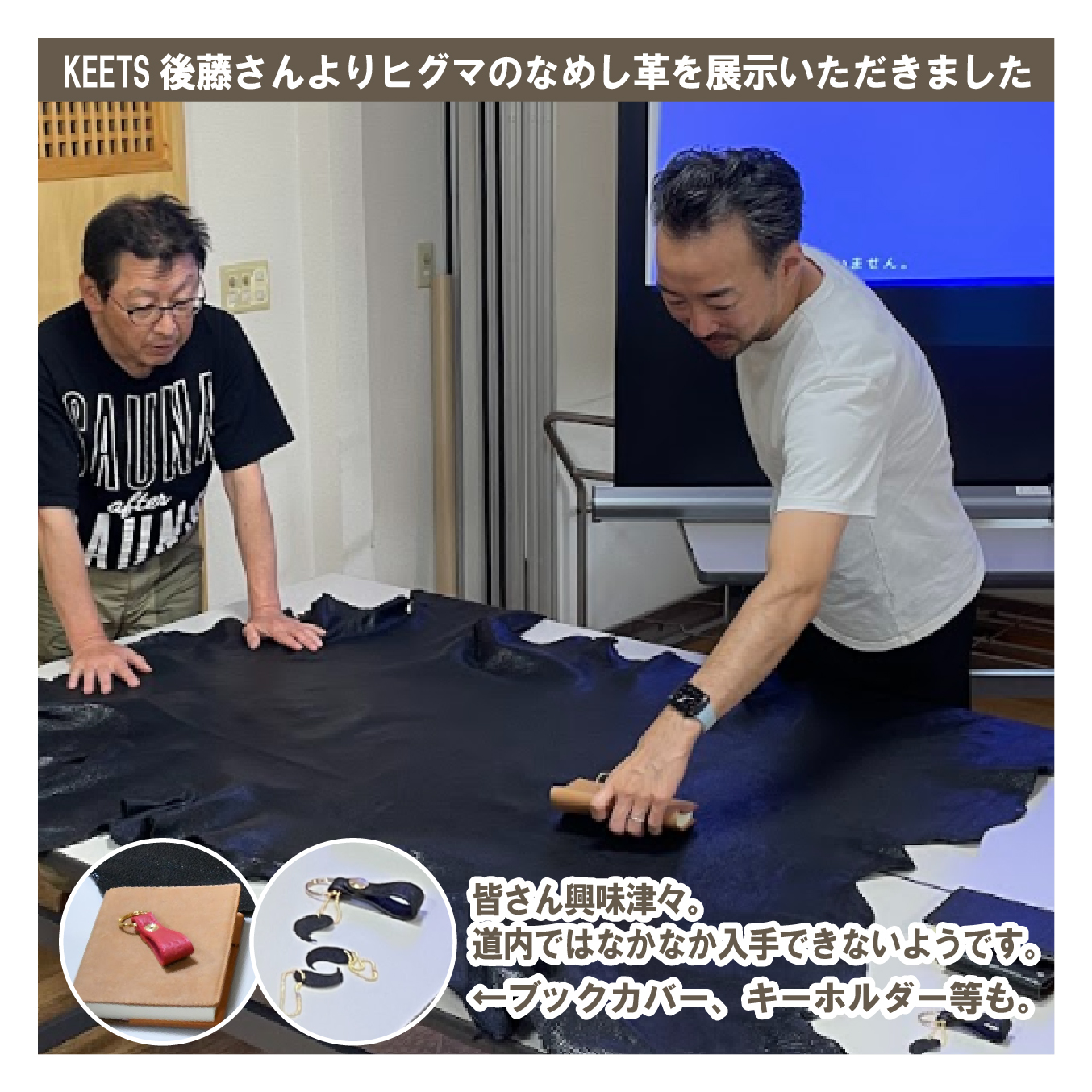 また、今回はヒグマを含む野生動物の毛皮の有効活用について、円山西町でレザーブランド「KEETS」を立ち上げた後藤氏から話題提供がありました。さらに、円山西町でも近年問題となっている野生動物への餌やりについて、キタキツネを例に北海道大学の池田先生にご講演いただきました。