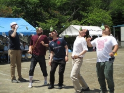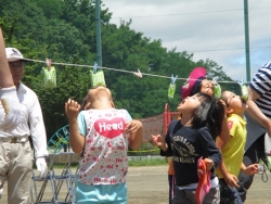 学校の運動会とは一味違う競技が多く、パン食い競走は、小学生から大人まで参加しました。