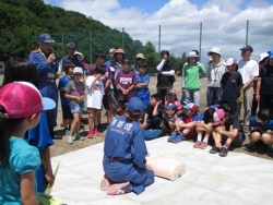 会場には、肺活量や握力などの健康測定コーナーがあり、また、競技の途中には、消防団(宮の森分団)・消防署(宮の森出張所)によるAED講習会も行われました。