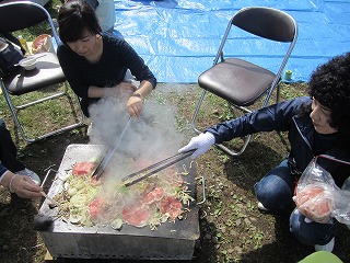 緑地で鍋を囲みながら、地域の方々とご一緒に、ジンギスカンを食べるのもまたなかなかおつなものであります。