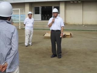 ◆第1部の防災訓練は、「発災対応型防災訓練」として、石狩地方で大規模な地震が発生したことを想定して訓練しました。午前8時30分頃、近隣の方々が小学生から高齢者まで小学校のグラウンドに続々と集まり始めます。8時50分、防災訓練の開会式を開始。吉田会長が、「災害が万が一発生したときのために、訓練をして備えましょう」と挨拶しました。9時に消防車のサイレンが鳴り、近隣の方々が更にグラウンドに避難してきました。阿妻防犯防火部長が吉田会長に被害状況を報告し、災害対策本部の設置を要請。吉田会長は本部設置を宣言しました。