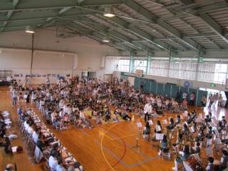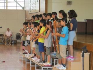 ピアノの伴奏に合わせた明るい歌声が印象的でした。また、リコーダーの演奏では、普段の授業で使わない大きいリコーダーの演奏も見られ、さわやかな音色が体育館に響き、美しいメロディーが流れました。