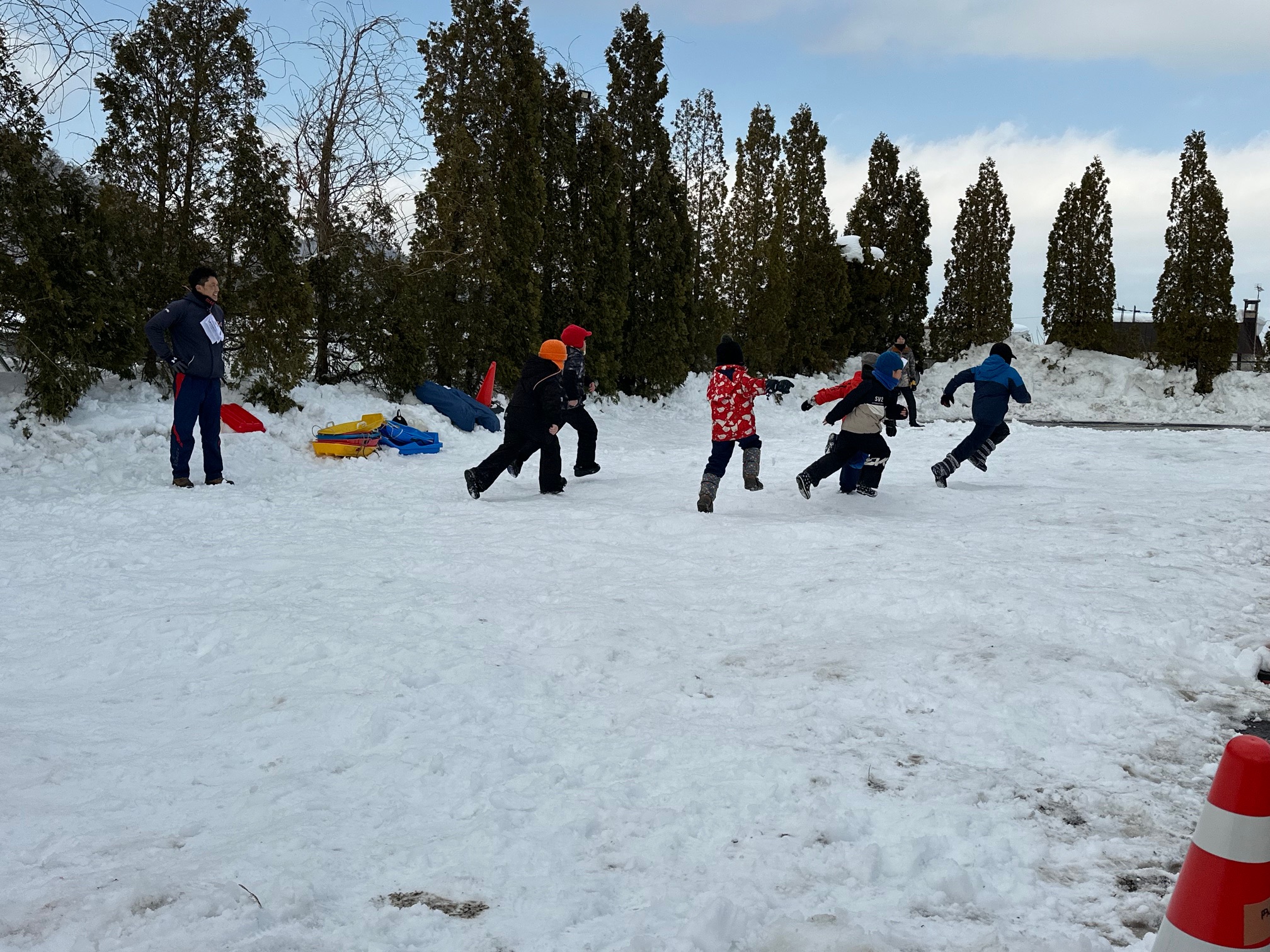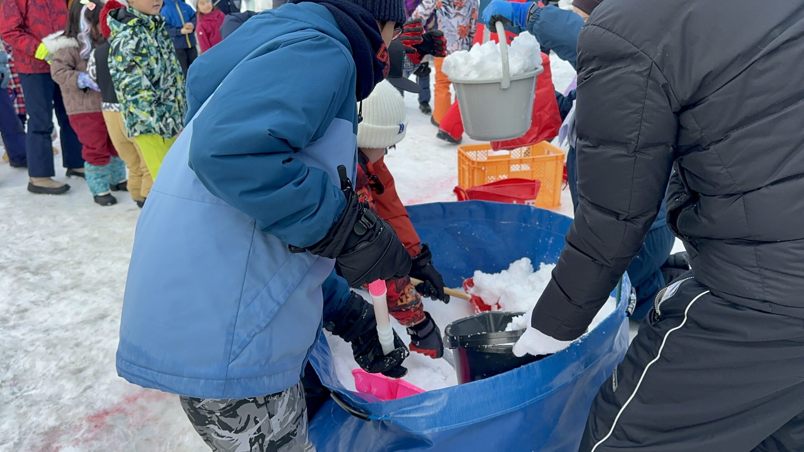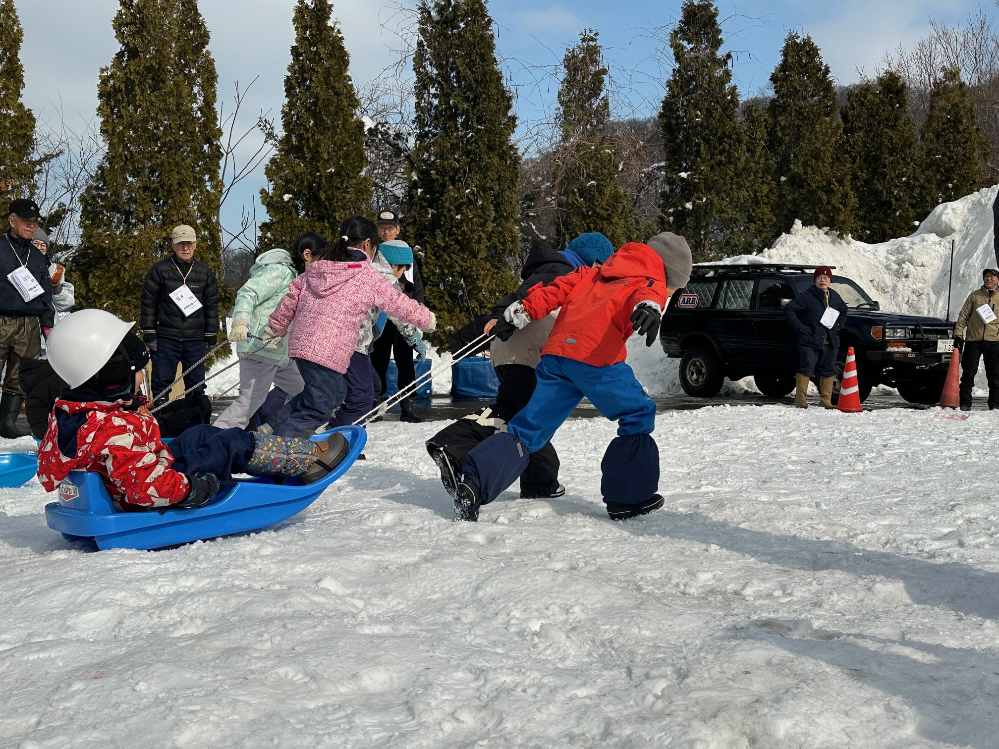 その後も、スノーボートレース、カラーボールを使っての鬼退治、雪上の席取りゲームと、笑顔あふれる競技が次々と繰り広げられました。